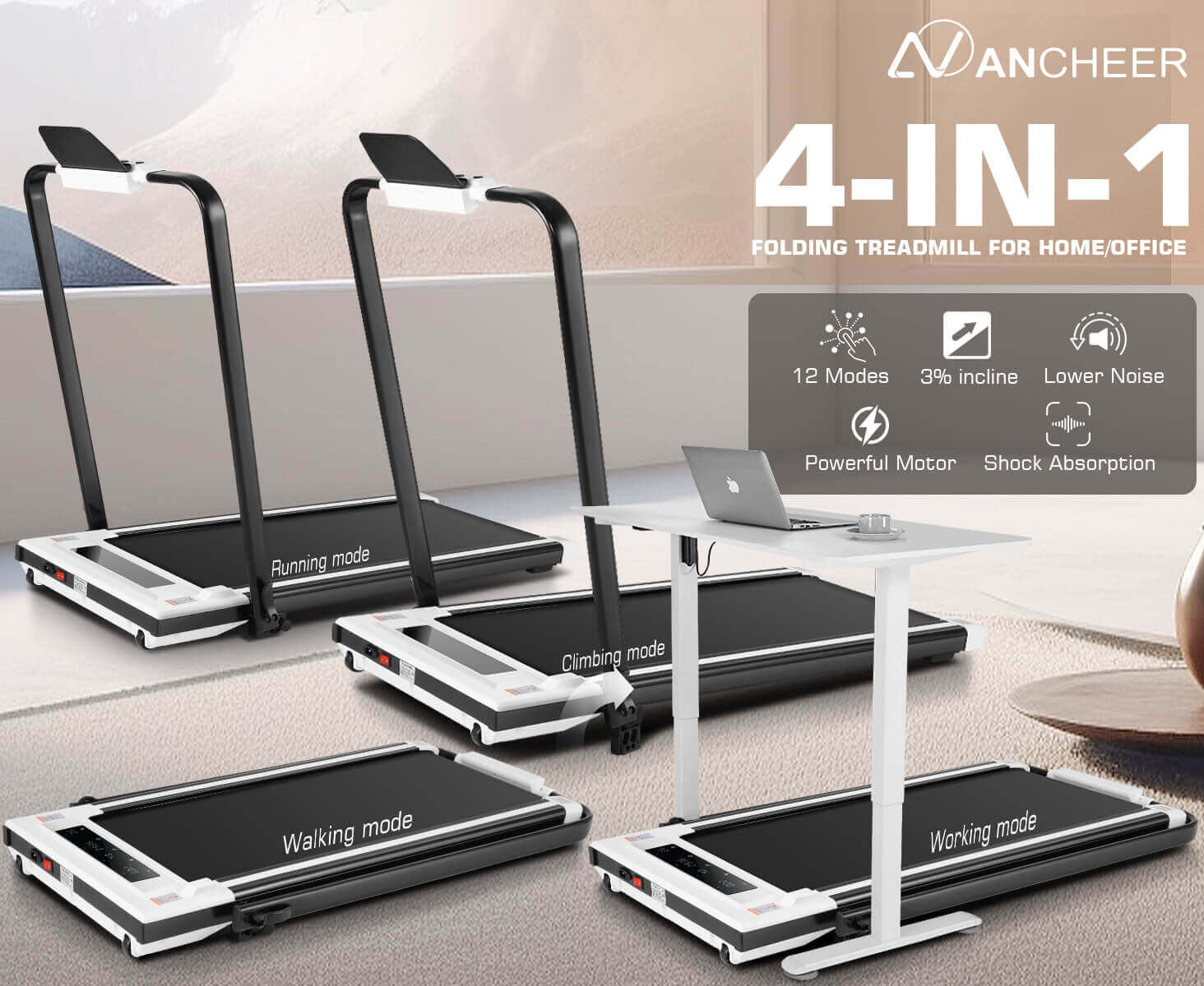 • Innovative Multi-purpose Treadmill: This ANCHEER folding treadmill can be used as a treadmill or an under-desk walking pad(flat or inclined). It becomes an off-stage treadmill when you are working or studying. The speed is in the range of 0.6~4mph, and you can walk easily. Running at a speed of 0.6-7.5 mph when the treadmill handles are raised, so you can run to reach your fitness goals(Please connect the safety key first, whether the armrest is raised or lowered).