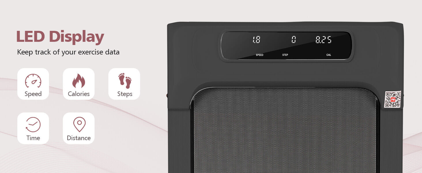 LED Display & Muti-Speed: Our under desk treadmill comes with an LED display, providing real-time feedback on speed, time, calories, and distance. With speeds from 0.6 to 3.8 mph, allows you to enjoy outdoor sports indoors.