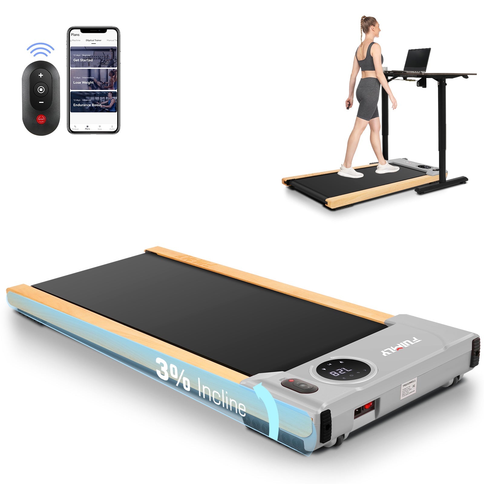 Wooden Design & APP: The FUNMILY under-desk treadmill is the only wooden model design on the web. The logs hit the color (pink/black/silver), to bring you a variety of visual feasts. Sturdy edge detailing ensures durability. The APP Provides workout videos and helps you monitor your progress and set fitness goals.